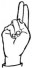 На ћирилици написано МИЉА БАЈКИЋ састоји се из 10 слова [?]. Исписано ћириличном једноручном азбуком за глувонеме: